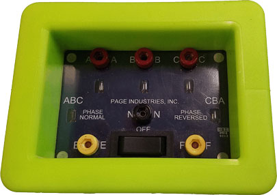 The AERO P2861 Phase Sequence Tester is the number one tool in the industry to quickly and safely test the electrical connection and verify voltage readings at the end of any 400Hz six pole aircraft cable assembly. Simply plug the PAGE Phase Sequence Tester onto an aircraft plug and use the front test points and LED’s to verify the cables operation. When 400Hz systems are repaired or the air-craft power cable is replaced, there is a risk of incorrectly connecting the output phases which could result in serious problems.