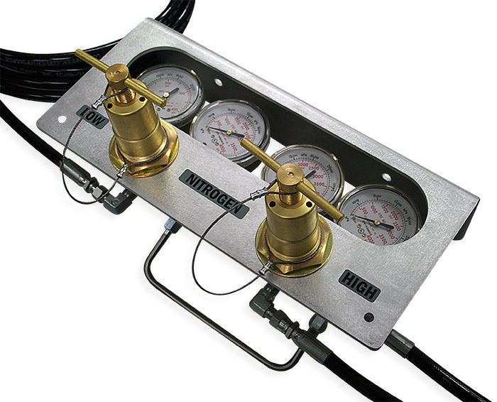 For any aircraft, there are different systems requiring nitrogen at different PSI ranges. For this reason, it is important to have both a low and a high-pressure regulator. The purpose of having a low-pressure regulator is to service low pressure nitrogen systems (for example, aircraft tires). The purpose of having a high-pressure regulator is to service high pressure nitrogen systems (for example, aircraft struts and accumulators, which are used as a backup system for hydraulic failure). A low/high regulator system allows the operator to service low and high psi ranges without switching bottles or regulators. One service regulator system can then service all nitrogen requirements of an aircraft.