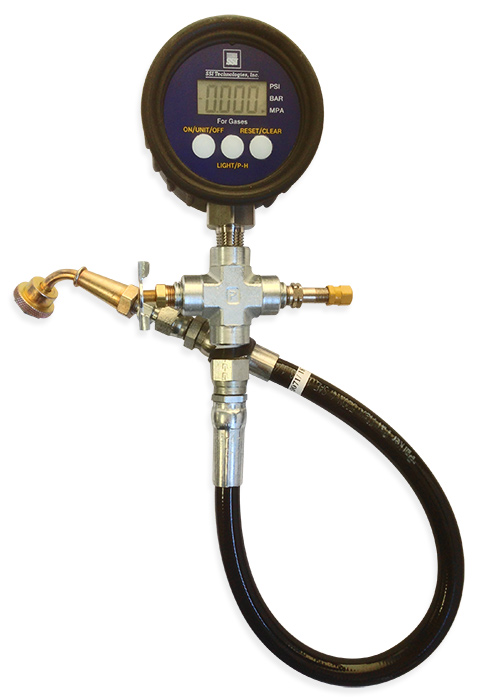 - Digital pressure display in psi, bar or MPa