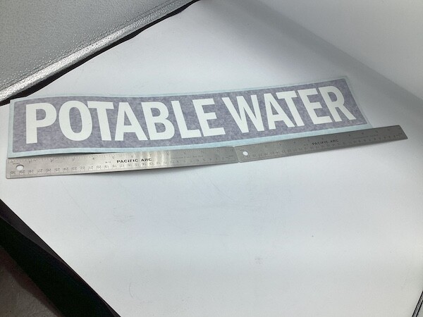 Decal, Hold Down To Pump, 3" x 1.5" Used on our lavatory & potable water service carts ...more→