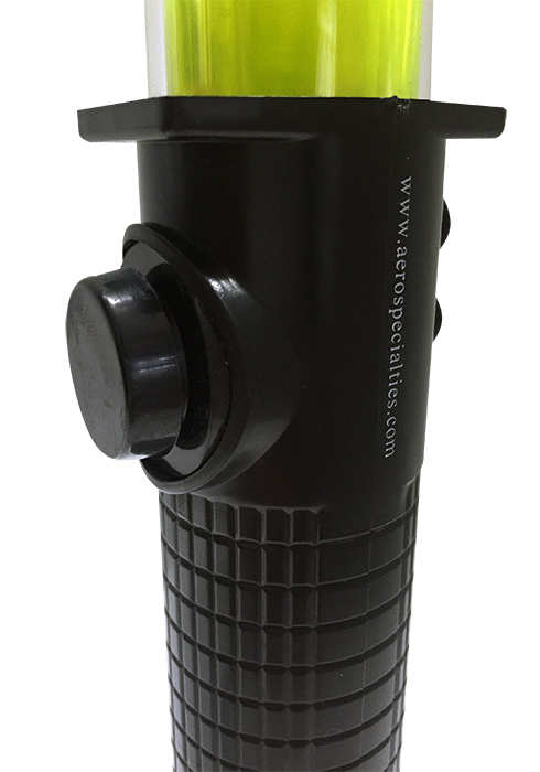 The new AERO Specialties yellow LED safety marshalling wand is the brightest and most durable wand available for traffic safety and communication. This bright LED wand features a loud (120 dB) SOS alarm and three (3) light modes to capture attention and ensure visibility in any weather or traffic scenario. Clearly visible up to a mile away, you can safely guide your aircraft with these ramp-grade marshalling wands. The wand is powered by three (3) AA batteries, allowing for 400 hours of operation.