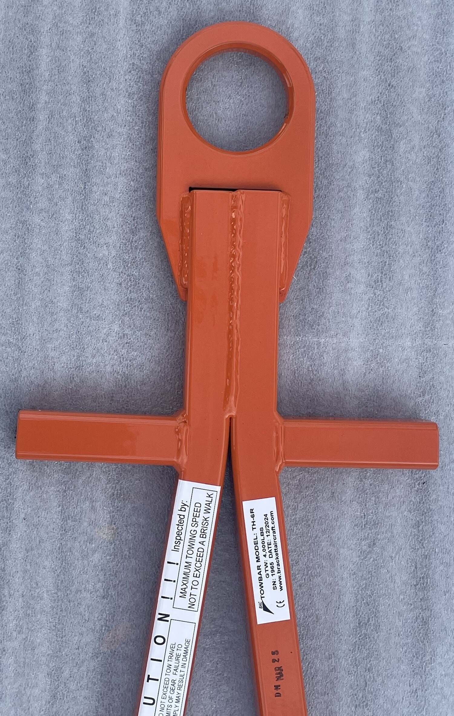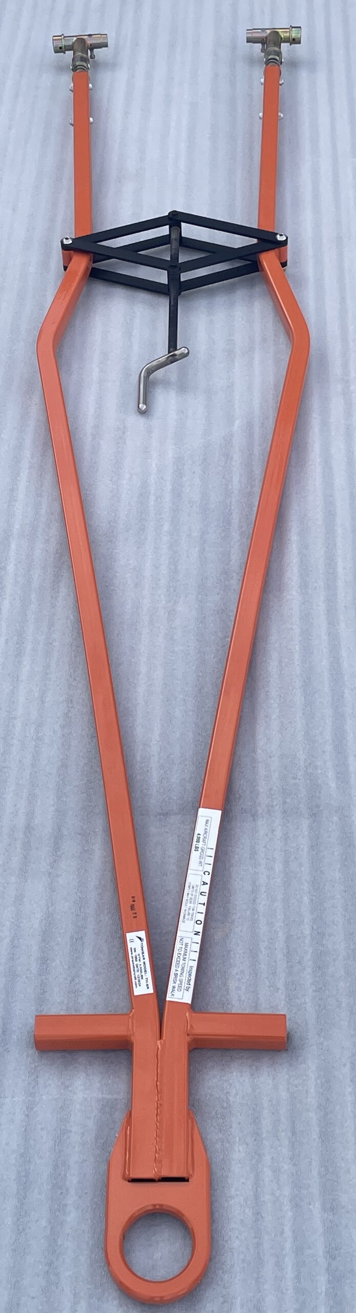 The 6R aircraft towbar is a lightweight universal towbar designed to eliminate the mad hunt for the proper towbar when moving a hangar full of singles and light twins. The 6R has good handle for pulling and a ring hitch for towing.
